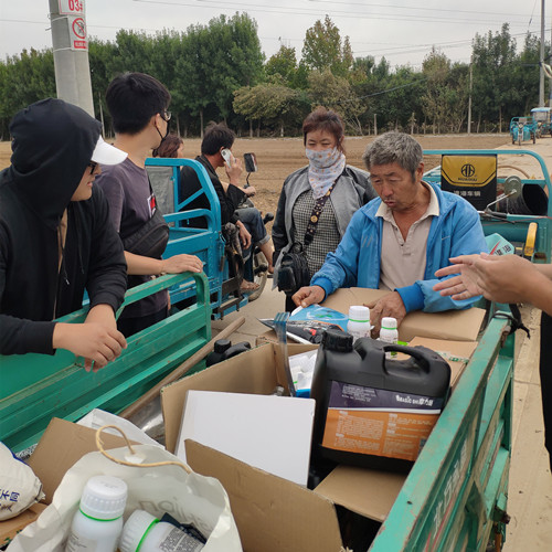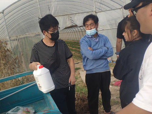 摩爾高級農藝師及銷售專員前往中牟草莓大棚種植基地推廣介紹新型高效濃縮葉面肥優勢效果,種植戶仔細了解咨詢中。…